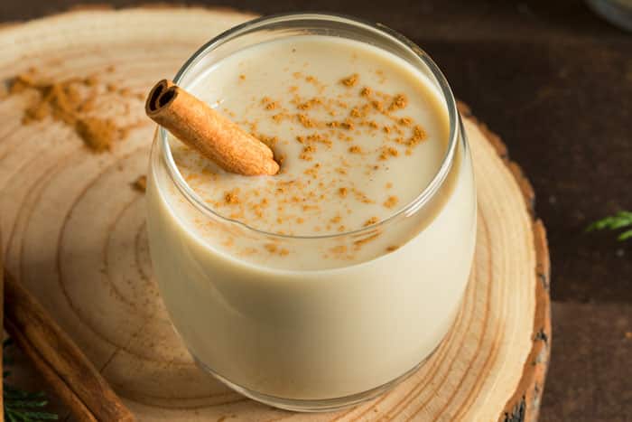 1 Liter Milch, 6 Eier, 150 Gramm Zucker, 100 Gramm Mehl, 1 Tasse süßer Anis, Zimt zum Dekorieren, Zimtstangen, 1 Zitronenschale, 1 Orangenschale.