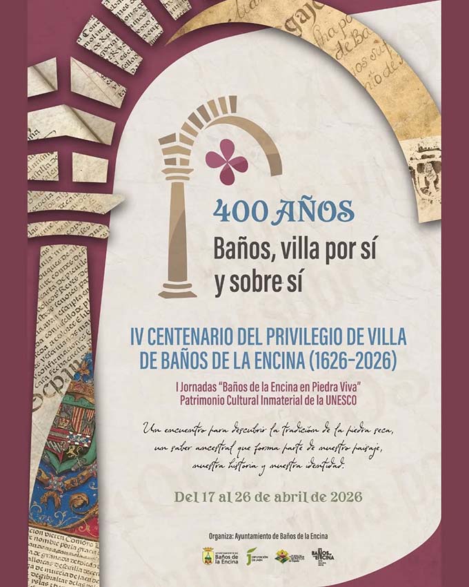 Baños de la Encina celebra en 2026 cuatro siglos de uno de los hitos más significativos de su historia: la concesión del Privilegio de Villa, otorgado en 1626 y determinante para el desarrollo político, social y económico del municipio. Este aniversario se convierte en una oportunidad única para redescubrir la identidad bañusca, su patrimonio excepcional y la memoria colectiva que ha dado forma a la localidad a lo largo de los siglos.
