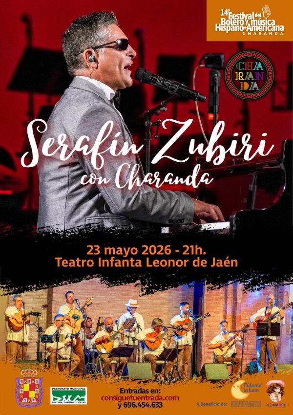 Serafín Zubiri, cuya voz cercana y sensibilidad interpretativa han marcado varias generaciones, y el grupo Charanda, que aportará la riqueza rítmica y melódica de la tradición latinoamericana. Juntos construirán un viaje musical que transita por boleros inolvidables, canciones que forman parte de nuestra cultura sentimental y piezas que evocan paisajes de México, Cuba y otros países hispanos. Será una velada íntima, elegante y profundamente emotiva, pensada para quienes disfrutan de la música interpretada desde el corazón y en un espacio que realza cada matiz. Una cita especial para vivir el bolero en toda su esencia en el corazón de Jaén.