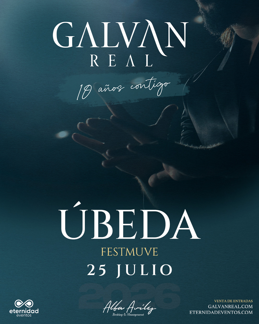 El cantante Galvan Real presentará el 25 de julio en Úbeda con sus canciones románticas de flamenco fusión. El cantante valenciano ha logrado llegar a una enorme legión de fans con su característica voz rasgada y el romanticismo de sus letras.