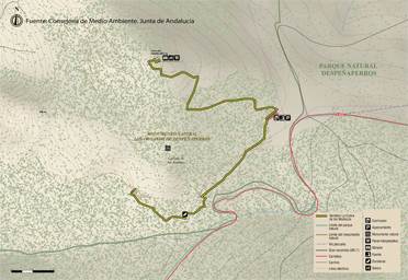 The path starts at the Historical and Cultural Heritage Interpretation Centre in the Despeñaperros Natural Park (see map), which can be reached by taking the A-6.200 road from the E-05 motorway, towards Aldeaquemada. The centre has been built on an old sheepfold at the foot of the Castle hill. On the opposite side of the hill, the Autovía del Sur runs through the historic Despeñaperros pass.