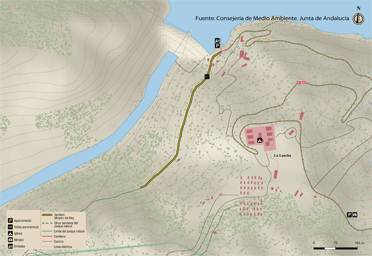 Once in La Lancha we must continue along the same road down to the dam, where the trail begins. If you have come here by car, leave it here to first have a look at the Jandula reservoir from the dam itself, and then take the short path. Almost eighty years ago, this large artificial lake was created where the waters of the Jandula River flowed along some twenty kilometres of its course, flooding its enclosed valley. The reservoir has a capacity of 322 Hm3 with a sheet of water of 1,231 hectares. This is a new feature introduced into the geography of the sierra which, logically, has had a significant impact on the landscape, ecology and the local and regional economy.
