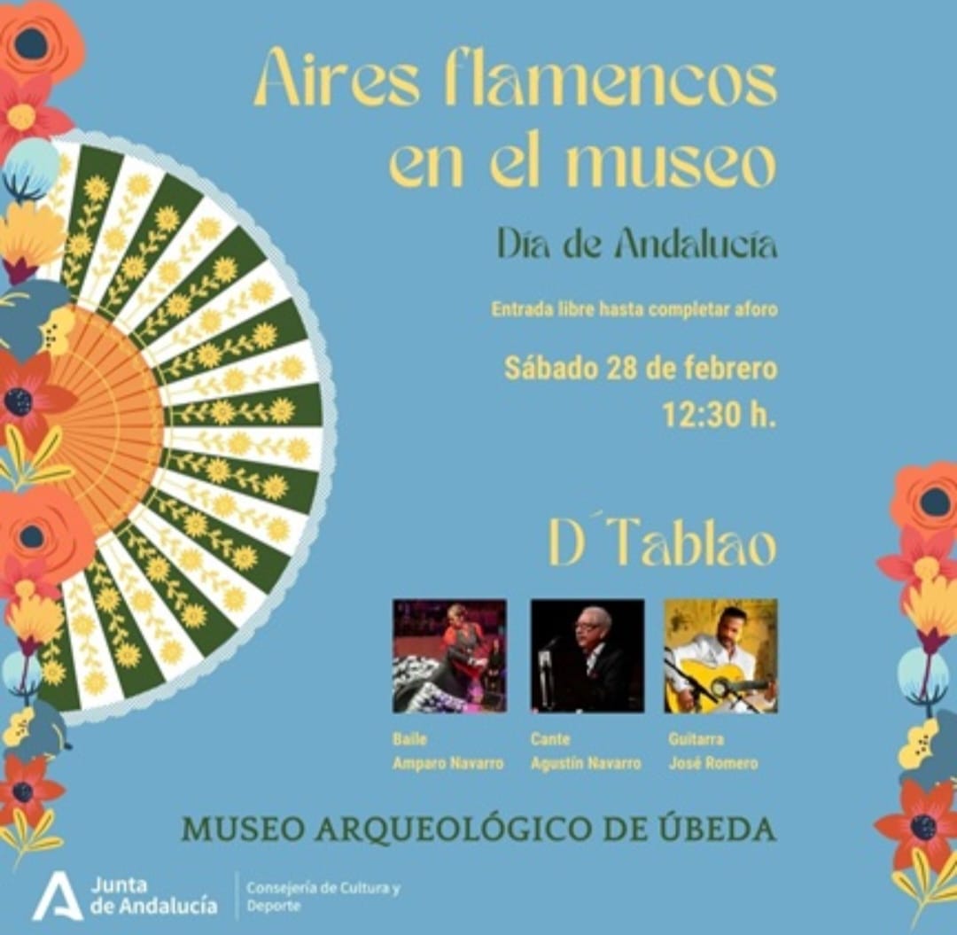 El Día de Andalucía se celebra también con arte. El Museo Arqueológico de Úbeda abre el 28 de febrero sus puertas a un mediodía lleno de compás con Aires Flamencos en el Museo, un espectáculo íntimo donde el duende se siente a pocos metros. La fuerza del baile de Rosa Ruiz, la voz profunda de Juan Carmona, la guitarra de Salvador Moreno y la percusión de Manuel Ruiz llenarán la Casa Mudéjar de ritmo, emoción y tradición. Un encuentro cercano, auténtico y gratuito, perfecto para disfrutar en familia o con amigos en un espacio patrimonial único.