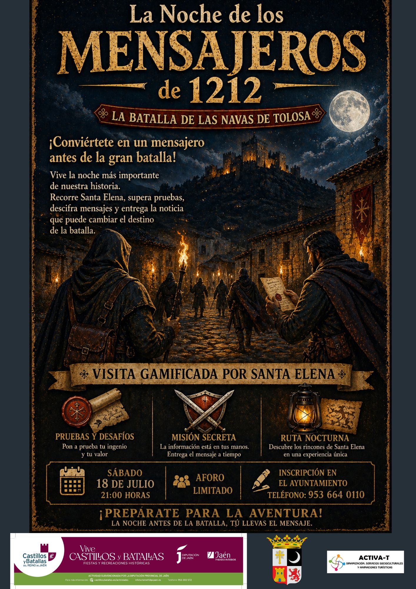 La actividad propone una visita gamificada por Santa Elena, en la que los asistentes deberán superar pruebas y desafíos que pondrán a prueba su valor y su capacidad para descifrar mensajes cruciales. La misión es clara: custodiar una información vital y entregar el mensaje a tiempo, tal y como hicieron los mensajeros que, en 1212, cambiaron el rumbo de la historia.