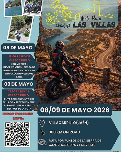 Villacarrillo se convertirá los dias 8 y 9 de mayo en el punto de partida de una experiencia que es mucho más que una ruta en moto. Moto Raid: Sierra Las Villas reúne a amantes del motor y del paisaje en un encuentro que celebra la libertad de rodar, la belleza del Parque Natural y la camaradería que solo nace en la carretera.