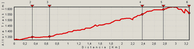A 2700 m Dejamos la pista forestal y giramos a la izquierda por una senda bien señalizada. (Si lo preferimos, también podemos seguir por la pista, que hace un amplio y suave bucle dando un rodeo por la zona central del calar, para unirse de nuevo con la senda). La senda pasa por una navilla y se dirige hacia unos mojones de piedras.