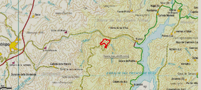 En la JH-7155 a la que se accede desde Mogón o desde el Charco del Aceite, en el km. 52,7, donde sale un carril a nuestra derecha hacia abajo, si entramos desde el Puente de los Agustines o Charco del Aceite.