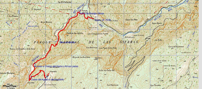 Volvemos por nuestros pasos a nuestra ruta para continuar subiendo el valle del Segura y llegar tras 4,7 km a la Cueva del Agua, uno de los máximos atractivos de este recorrido, que es un destacado exponente del paisaje kárstico segureño. Desde esta amplia cavidad, por la que suele circular el agua, se disfruta de buenas vistas sobre el cañón del Segura.