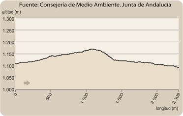 Al principio del sendero, en una curva hay un desvío que se dirige al barranco del Gargantón, que no tomaremos. Nuestro camino es siempre ascendente, por una pista amplia y con firme de tierra. Zigzageando gana altura durante cuatro kilómetros, mientras atraviesa un denso pinar de repoblación. Esta primera etapa de aproximación nos empieza a mostrar vistas, y nos lleva al interior de Sierra Mágina.