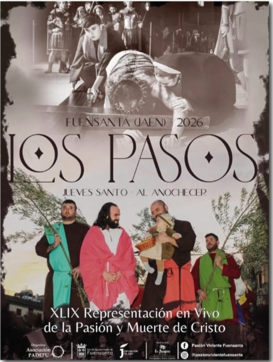 Cada Jueves Santo, Fuensanta de Martos revive su tradición más querida: Los Pasos. A las 20:30, más de un centenar de vecinos dan vida a la pasión y muerte de Jesucristo en una representación que recorre la Plaza del Ayuntamiento, el Paseo de la Fuente y el Monte Calvario.