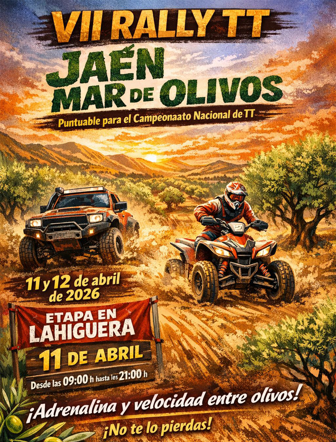 El Rally TT Jaén Mar de Olivos regresa los días 10 y 11 de abril como una de las pruebas más espectaculares del Campeonato de España de Rallyes Todo Terreno, una carrera que reúne a los vehículos más potentes y preparados del panorama off‑road nacional.
